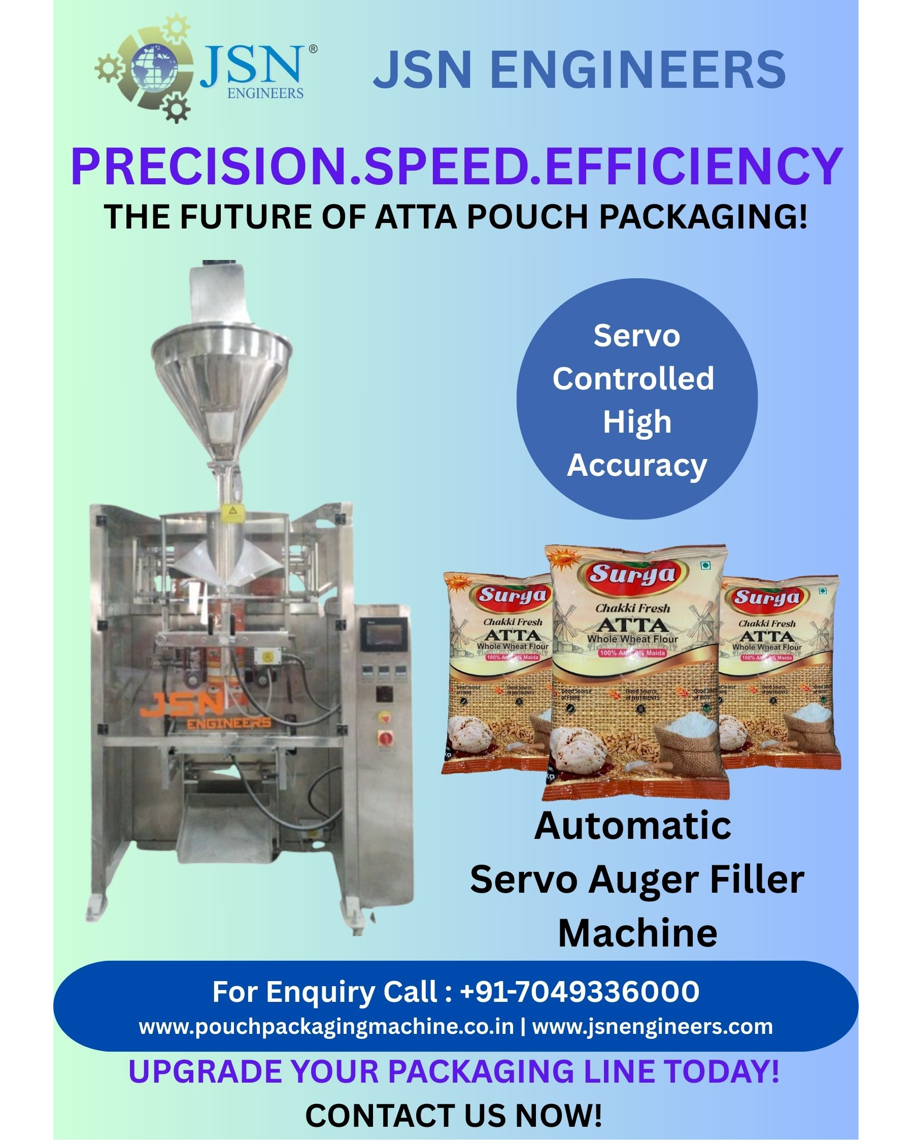 Fully-Automatic High-Speed & High-Precision based Servo-Auger Filler Machine for Atta Pouch Packaging [200gm - 1 Kg, 500gm - 5 Kg and 1 Kg - 10 Kg]. JSN ENGINEERS is a leading manufacturer & supplier of automatic pouch packaging machines for packing of FMCG Products in non-liquid form, based in Indore [Madhya Pradesh]. Some of our primary machinery models are Servo Auger Filler Machine, Multi Head Weigher Machine i.e. 10 Head Weigher and 14 Head Weigher, Collar Type Volumetric Cup Filler Machine, Linear Weigher Machine i.e. 2 Head and 4 Head, Product-Feeder Systems e.g. L Type Bucket Elevator, Z Type Bucket Elevator, Inclined Screw Conveyor with Ribbon Blender. JSN ENGINEERS is serving in FMCG Industry with more than 20 years of Experience in Automatic Pouch Packaging Machines for Pouch Packing of Huge Range of Products e.g. Flour / Atta, Maida, Sooji, Rawa, Daliya, Besan, Masale, Sattu, Millets, Pulses – Chana Dal, Moong Dal, Grains, Dry-Fruits, Grains, Whole Spices, Seeds, Spices Powder, Poha, Pasta, Cement, Pesticides, Fertilizers, Tea, Sugar, Grocery Products, Camphor, Namkeen, Wafers, Chips, Snacks, Kurkure, Fryums, Soya Chunks, Soya Sticks and similar Granules and Powder products in consumer pouch packing from 2gm to 10 kg. atta packing machine automatic atta packing pouch machine atta pouch packing machine automatic agarbatti pouch packing machine automatic atta packing machine automatic atta packing machine price automatic atta pouch packaging machine ahmedabad gujarat automatic atta pouch packaging machine at indore automatic atta pouch packaging machine automatic automatic atta pouch packaging machine bhopal automatic atta pouch packaging machine business automatic atta pouch packaging machine business plan automatic atta pouch packaging machine catalogue pdf automatic atta pouch packaging machine contact number automatic atta pouch packaging machine cost automatic atta pouch packaging machine dealers in india automatic atta pouch packaging machine dealers in indore automatic atta pouch packaging machine faridabad automatic atta pouch packaging machine for packaging automatic atta pouch packaging machine for packing automatic atta pouch packaging machine for sale automatic atta pouch packaging machine gujarat automatic atta pouch packaging machine heavy duty automatic atta pouch packaging machine how to use automatic atta pouch packaging machine hyderabad automatic atta pouch packaging machine in india automatic atta pouch packaging machine in indore automatic atta pouch packaging machine in indore madhya pradesh automatic atta pouch packaging machine indiamart automatic atta pouch packaging machine jaipur rajasthan automatic atta pouch packaging machine ka price automatic atta pouch packaging machine kolkata west bengal automatic atta pouch packaging machine list automatic atta pouch packaging machine load capacity automatic atta pouch packaging machine low price automatic atta pouch packaging machine machine automatic atta pouch packaging machine machine price automatic atta pouch packaging machine machines automatic atta pouch packaging machine manufacturers automatic atta pouch packaging machine manufacturers in india automatic atta pouch packaging machine manufacturers in indore automatic atta pouch packaging machine mill automatic atta pouch packaging machine name automatic atta pouch packaging machine near indore madhya pradesh automatic atta pouch packaging machine near me automatic atta pouch packaging machine noida automatic atta pouch packaging machine online automatic atta pouch packaging machine plant automatic atta pouch packaging machine price automatic atta pouch packaging machine price in india automatic atta pouch packaging machine price in indore automatic atta pouch packaging machine price list automatic atta pouch packaging machine quality automatic atta pouch packaging machine quantity automatic atta pouch packaging machine quotation format automatic atta pouch packaging machine rate automatic atta pouch packaging machine rental in indore automatic atta pouch packaging machine repair in indore automatic atta pouch packaging machine training automatic atta pouch packaging machine type automatic atta pouch packaging machine unit automatic atta pouch packaging machine used automatic atta pouch packaging machine video automatic atta pouch packaging machine weight automatic atta pouch packaging machine weight in kg automatic atta pouch packaging machine with machine automatic atta pouch packaging machine working automatic atta pouch packaging machine working principle automatic atta pouch packaging machine yojana automatic pouch packing machine automatic pouch packing machine manufacturers automatic pouch packing machine price automatic pouch packing machine price in india automatic pouch packing machine video automatic pouch packing machines best pouch packing machine best pouch packing machine in india fully automatic pouch packing machine fully automatic pouch packing machine price in india pouch packing automatic machine semi automatic pouch packing machine price small automatic pouch packing machine